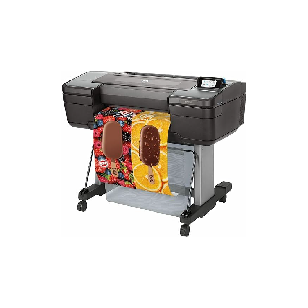 Equipada con HP Vivid Photo Inks (tintas pigmentadas), esta impresora produce resultados resistentes al agua y al desgaste, ideales para uso en interiores y exteriores. Su potente arquitectura de procesamiento y compatibilidad con Adobe PDF Print Engine garantizan un manejo fluido de archivos pesados como mapas, fotos, renders y gráficos detallados.